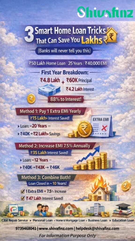 #HomeLoan #LoanTips #Shivafinz #EMIHacks #InterestSavings #MortgageIndia #FinancialEducation #SmartMoney